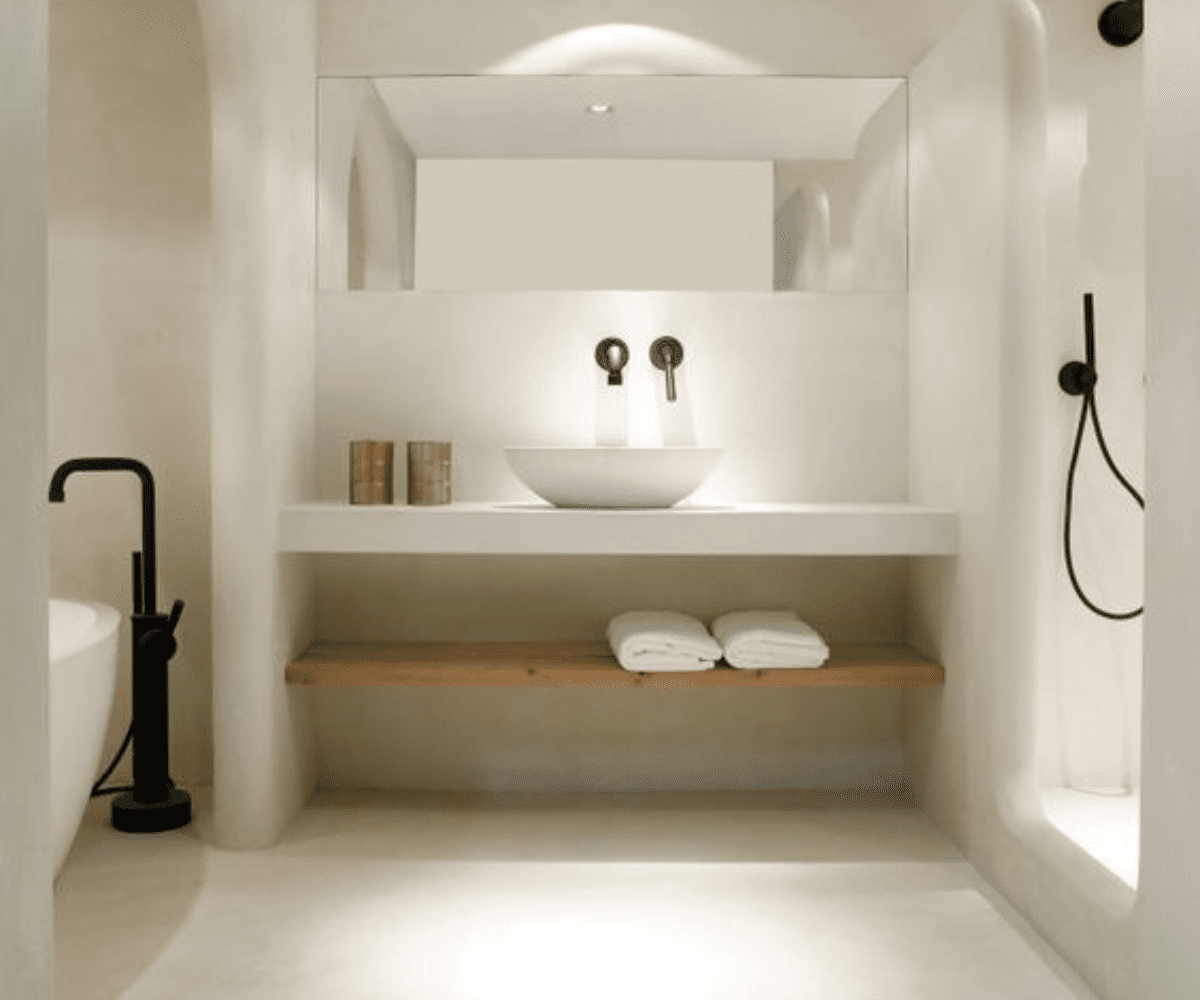 Beton Cire (letterlijk: gewreven beton) is een cementgebonden afwerklaag die met de hand wordt aangebracht. Het resultaat is een naadloze, waterdichte en bijzonder stijlvolle afwerking die geschikt is voor vloeren, wanden, meubels en zelfs douchevloeren. In badkamers creëert het een rustige en luxe sfeer zonder voegen of naden waar vuil zich kan ophopen.